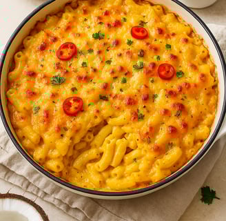This Coconut Curry Macaroni Pie is Trinidad-style meets Jamaican flair. It's cheesy, it's spiced just right, and the coconut milk adds that unmistakable island touch that regular mac and cheese could never pull off.